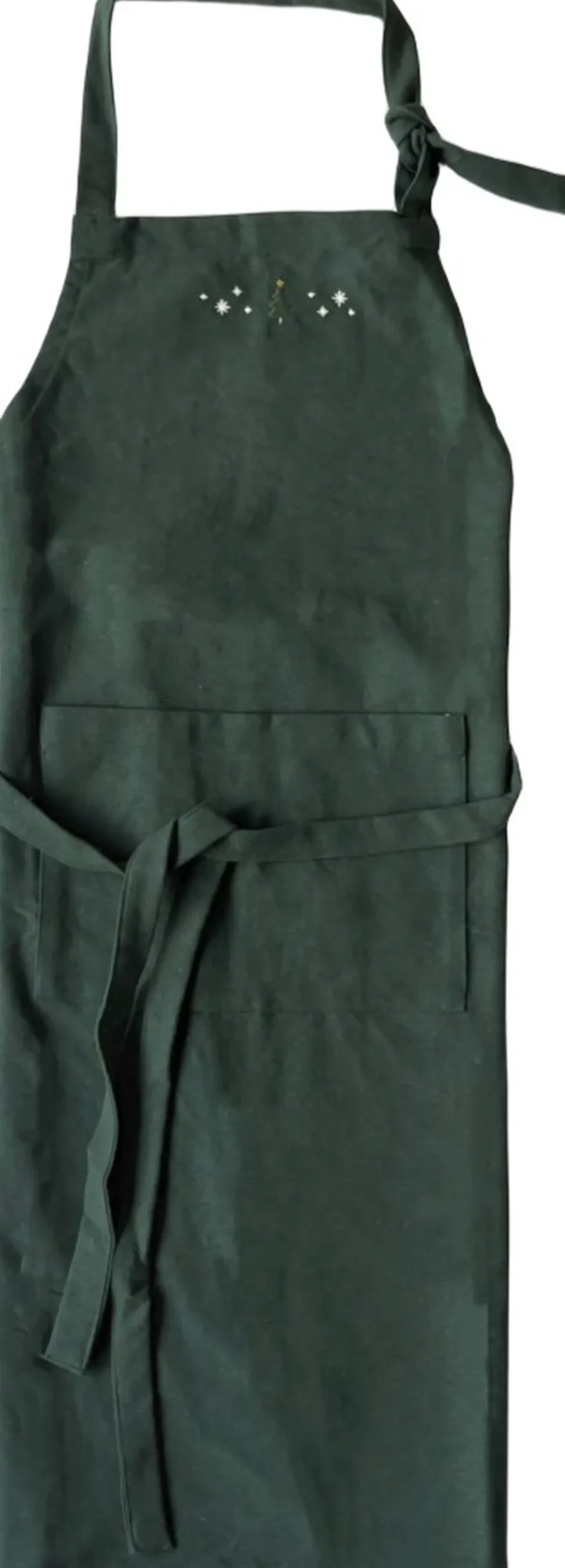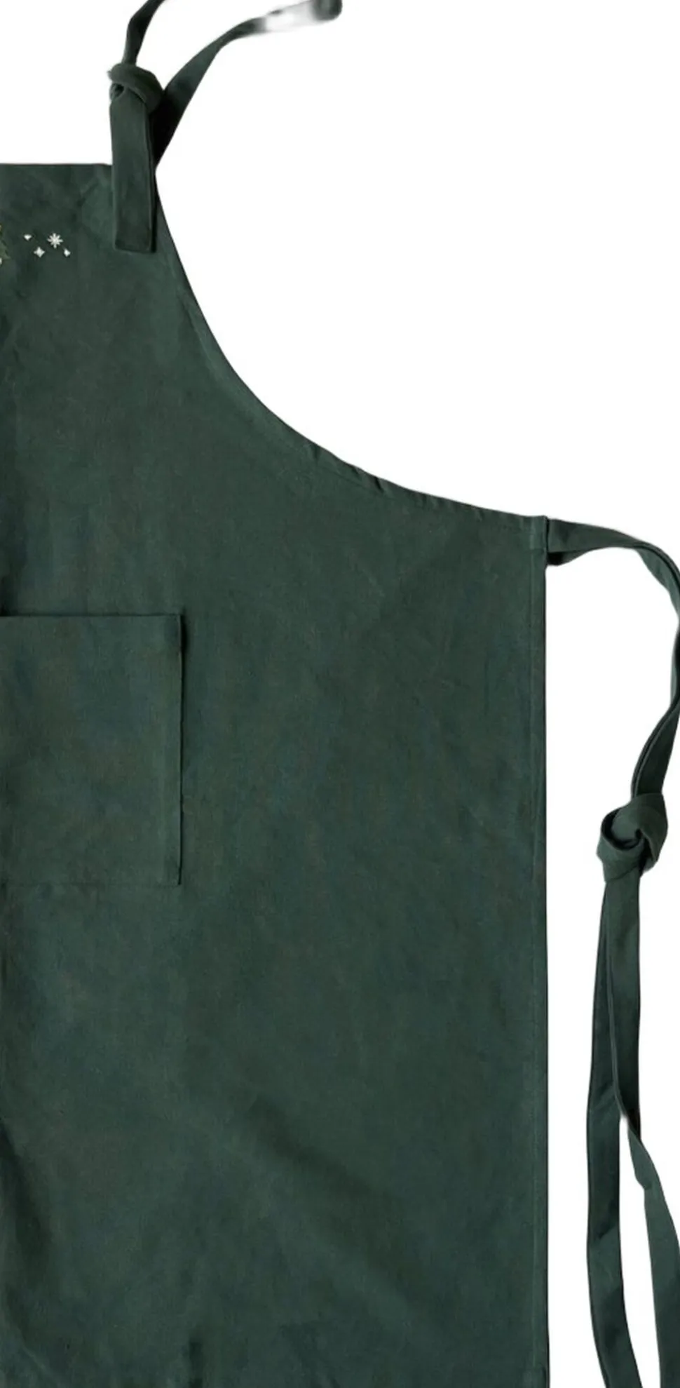 Mærk stemningen med JUNA Christmas Fable magiske juletekstiler til alle rum. Juleeventyr, fantasi og humoristiske dekorationer med masser af cosy kant. Med JUNA Christmas Fable får du en serie af moderne tekstiler med broderede motiver, der både æstetisk og legende forankrer og fornyer julens helt særlige stemning gennem et magisk juleunivers fuld af traditioner, hygge og personlighed. Tænk på en komplet og fuldstændig gennemført julekollektion af certificerede tekstiler til både dit køkken og resten af hjemmet. De dekorative julesokker på trappen fyldt op med dagens kalendergaver. Duftene fra køkkenet, der blander sig med hjertevarme forventninger og kærlige minder om en hyggelig aften i stuen. Den ikoniske juleborddækning, der løfter stemningen og får både børn og voksne til at glædes sammen. Og forestil dig så det hele tilsat nærmest karikerede klassiske broderier, der fortæller endnu flere historier end de tråde, de er syet med. Tryllebunden misteltensmagi, skitseagtige juletræer, nuttede rensdyr, ikoniske julehjerter og fluffy julestjerner. Alle skabt med masser af glimt i øjet i en sød og bevidst naivistisk stil, der ikke kan undgå at sende dit julehumør helt op til den skønneste stjernehimmel. JUNA Christmas Fable er skabt til at samle os omkring bordet, i køkkenet og også trække julestemningen med helt ind på puden, inden vi rammer drømmeland. Fuld af små broderede detaljer. Spækket med de helt store julefølelser. Dette fortryllende JUNA Christmas Fable-forklæde i en dyb julegrøn farve er dekoreret med et broderet motiv af seriens juletræ, der omgivet af de yndigste små julestjerner i hvid smukt og stilfuldt pryder toppen af forklædet. Forklædet har selvfølgelig stropper for den helt rigtige justering både over nakken og omkring kroppen, og lige midt på fronten finder du en praktisk lomme perfekt til at hænge et af Christmas Fable-seriens matchende viskestykker i. Forklædet er onesize og kommer i et skønt tekstilmix, hvor GRS-certificeret genanvendt bomuld bliver spundet sammen med polyester for en flot og funktionel stofkvalitet med både blødhed og slidstyrke. JUNA Christmas Fable-serien giver dig et bredt udvalg af certificerede juletekstiler til hele hjemmet, hvor du mærker julestemningen i hver eneste tråd, og som du kan glæde dig til at finde frem jul efter jul. En kærlighedserklæring til godt håndværk og dekorativt dansk design vævet sammen af store eventyr og små broderede detaljer skabt til at holde længe og blive elsket endnu længere. (GRS Certified by Control Union, 1026087)