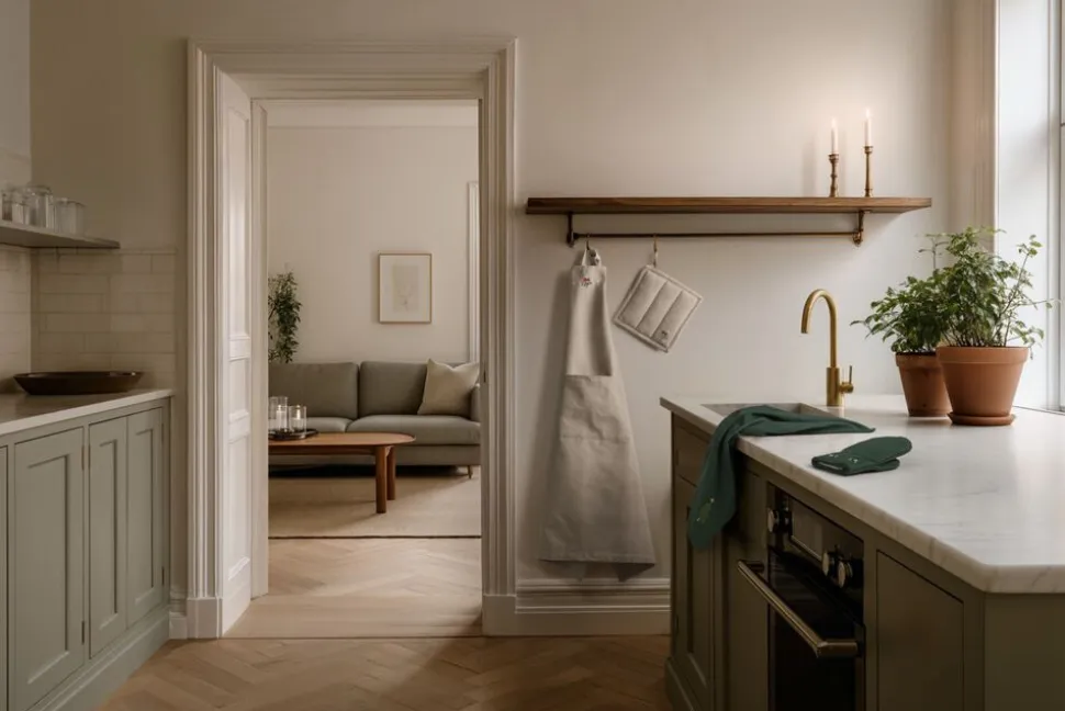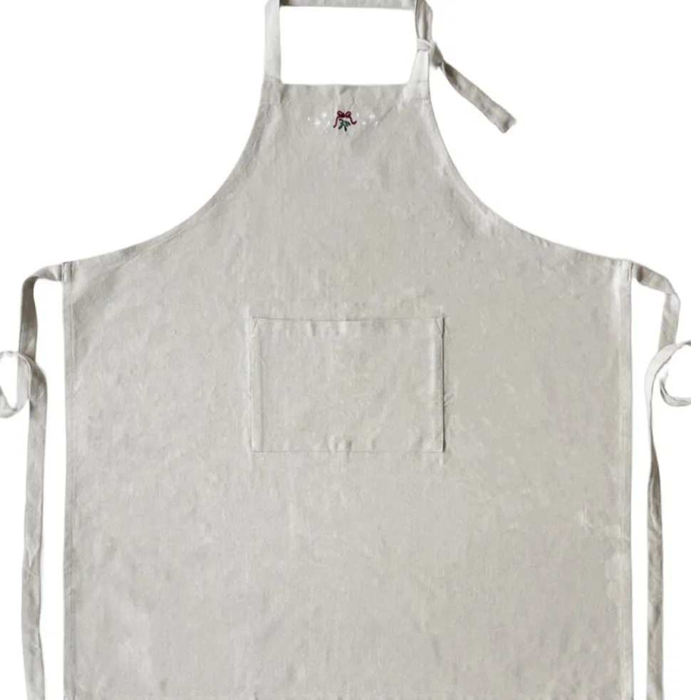 Mærk stemningen med JUNA Christmas Fable magiske juletekstiler til alle rum. Juleeventyr, fantasi og humoristiske dekorationer med masser af cosy kant. Med JUNA Christmas Fable får du en serie af moderne tekstiler med broderede motiver, der både æstetisk og legende forankrer og fornyer julens helt særlige stemning gennem et magisk juleunivers fuld af traditioner, hygge og personlighed. Tænk på en komplet og fuldstændig gennemført julekollektion af certificerede tekstiler til både dit køkken og resten af hjemmet. De dekorative julesokker på trappen fyldt op med dagens kalendergaver. Duftene fra køkkenet, der blander sig med hjertevarme forventninger og kærlige minder om en hyggelig aften i stuen. Den ikoniske juleborddækning, der løfter stemningen og får både børn og voksne til at glædes sammen. Og forestil dig så det hele tilsat nærmest karikerede klassiske broderier, der fortæller endnu flere historier end de tråde, de er syet med. Tryllebunden misteltensmagi, skitseagtige juletræer, nuttede rensdyr, ikoniske julehjerter og fluffy julestjerner. Alle skabt med masser af glimt i øjet i en sød og bevidst naivistisk stil, der ikke kan undgå at sende dit julehumør helt op til den skønneste stjernehimmel. JUNA Christmas Fable er skabt til at samle os omkring bordet, i køkkenet og også trække julestemningen med helt ind på puden, inden vi rammer drømmeland. Fuld af små broderede detaljer. Spækket med de helt store julefølelser. Dette fortryllende JUNA Christmas Fable-forklæde i en klassisk sandfarve er dekoreret med et broderet motiv af seriens mistelten, der omgivet af de yndigste små julestjerner i hvid smukt og stilfuldt pryder toppen af forklædet. Forklædet har selvfølgelig stropper for den helt rigtige justering både over nakken og omkring kroppen, og lige midt på fronten finder du en praktisk lomme perfekt til at hænge et af Christmas Fable-seriens matchende viskestykker i. Forklædet er onesize og kommer i et skønt tekstilmix, hvor GRS-certificeret genanvendt bomuld bliver spundet sammen med polyester for en flot og funktionel stofkvalitet med både blødhed og slidstyrke. JUNA Christmas Fable-serien giver dig et bredt udvalg af certificerede juletekstiler til hele hjemmet, hvor du mærker julestemningen i hver eneste tråd, og som du kan glæde dig til at finde frem jul efter jul. En kærlighedserklæring til godt håndværk og dekorativt dansk design vævet sammen af store eventyr og små broderede detaljer skabt til at holde længe og blive elsket endnu længere. (GRS Certified by Control Union, 1026087)
