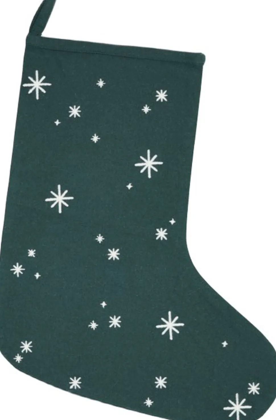Mærk stemningen med JUNA Christmas Fable magiske juletekstiler til alle rum. Juleeventyr, fantasi og humoristiske dekorationer med masser af cosy kant. Med JUNA Christmas Fable får du en serie af moderne tekstiler med broderede motiver, der både æstetisk og legende forankrer og fornyer julens helt særlige stemning gennem et magisk juleunivers fuld af traditioner, hygge og personlighed. Tænk på en komplet og fuldstændig gennemført julekollektion af certificerede tekstiler til både dit køkken og resten af hjemmet. De dekorative julesokker på trappen fyldt op med dagens kalendergaver. Duftene fra køkkenet, der blander sig med hjertevarme forventninger og kærlige minder om en hyggelig aften i stuen. Den ikoniske juleborddækning, der løfter stemningen og får både børn og voksne til at glædes sammen. Og forestil dig så det hele tilsat nærmest karikerede klassiske broderier, der fortæller endnu flere historier end de tråde, de er syet med. Tryllebunden misteltensmagi, skitseagtige juletræer, nuttede rensdyr, ikoniske julehjerter og fluffy julestjerner. Alle skabt med masser af glimt i øjet i en sød og bevidst naivistisk stil, der ikke kan undgå at sende dit julehumør helt op til den skønneste stjernehimmel. JUNA Christmas Fable er skabt til at samle os omkring bordet, i køkkenet og også trække julestemningen med helt ind på puden, inden vi rammer drømmeland. Fuld af små broderede detaljer. Spækket med de helt store julefølelser. Denne fortryllende JUNA Christmas Fable-julesok i en dyb julegrøn farve er dekoreret med et broderet motiv af seriens små julestjerner i hvid, der smukt og stilfuldt er spredt ud over hele julesokken et sjovt og stemningsfuldt gemmested til dine kalendergaver og alle dine lækre julegodter. Julesokken måler imponerende 45 cm i længden og kommer i et skønt tekstilmix, hvor GRS-certificeret genanvendt bomuld bliver spundet sammen med polyester for en flot og funktionel stofkvalitet med både blødhed og slidstyrke. JUNA Christmas Fable-serien giver dig et bredt udvalg af certificerede juletekstiler til hele hjemmet, hvor du mærker julestemningen i hver eneste tråd, og som du kan glæde dig til at finde frem jul efter jul. En kærlighedserklæring til godt håndværk og dekorativt dansk design vævet sammen af store eventyr og små broderede detaljer skabt til at holde længe og blive elsket endnu længere. (GRS Certified by Control Union, 1026087)