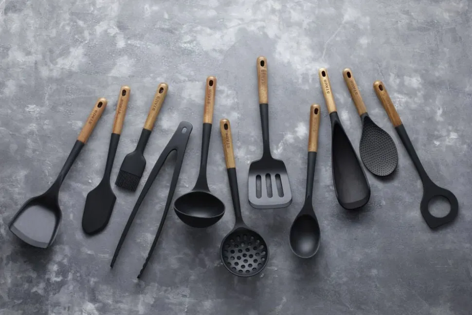 Køkkenredskaberne fra Staub Tools er både funktionelle og smukke, og designet til ergonomisk at ligge perfekt i hånden. Dejskraberen har et langt håndtag i miljøvenligt Akacietræ og hoveddelen er lavet i mat, sort silikone som er egnet alle køkkengrejs overflader, inklusiv non-stick belægninger. Silikonen er ikke kun ekstremt holdbar, men også varmebestandigt i op til 220°C. Dejskraberen er nem at rengøre, men bør vaskes op i hånden.