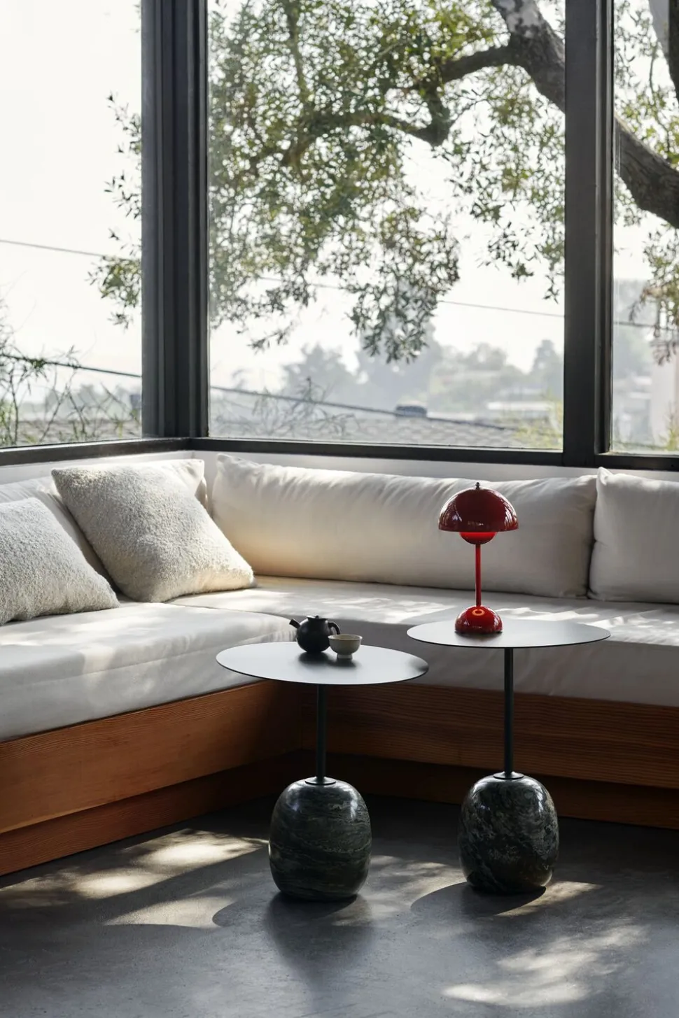 Flowerpot er designet af Verner Panton, som fandt inspiration til lampeserien i 60’ernes og 70’ernes Flower Power revolution. Flowerpot VP9 er en lampe du kan tage med dig, og er derfor ikke en helt almindelig bordlampe. Få lys hvor du har brug for det, også steder hvor der ikke er stikkontakt.