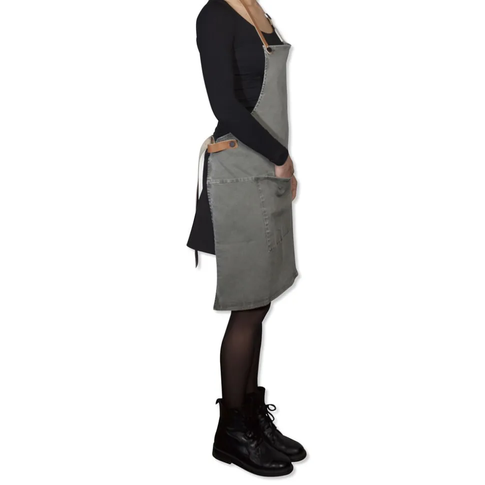 Forklædet i BBQ-stil i stræklærred er superbehageligt at have på. Det trendy forklæde for alle med en passion for mode og god mad. Fjern de 100 % læderremme, og du kan vaske forklædet ved 40 grader i vaskemaskinen. Luk forklædet på ryggen med en bæltespændelukning. Forklædet i BBQ-stil leveres med to karabinkroge og har en løkke i taljeremmen til dit håndklæde og andet køkkenudstyr. Hvert forklæde i BBQ-stil i lærred og denim har sin egen unikke slidvaskning. De leveres i en smuk gaveæske og er den perfekte gave til alle med en passion for køkken og design. Forklædet i stræklærred BBQ-stil fås også i Dark Blue. Tip: Få matchende læderovnhandsker i samme farve som remmene!