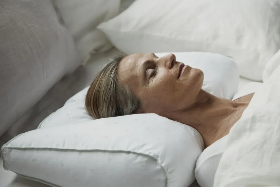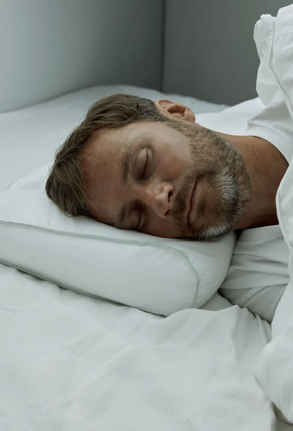 Sover du på siden, udfylder de høje sidekamre hulrummet mellem hoved og madras, mens underkanten af afrundet, så der er plads til skuldrene. Ligger du på ryggen, vil du mærke, at der er mindre fyld under baghovedet, hvilket strækker din nakke let og understøtter dens naturlige kurve.