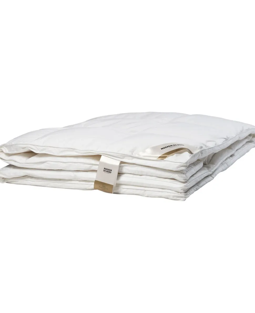 Guld Moskusdun Dyne – Varm 140×220 cm: indeholder 770 g Hvide moskusdun med Bæreevne/isoleringsevne 725. Lækker dyne med de blødeste dun, våret er 100% Bomuld satin, hvilket giver et lækkert blødt og åndbart produkt. Vi lukker ikke varm luft ud, når vi siger, at denne dyne holder dig varm hele natten året rundt. Vi lover dig, at hver aften vil føles som en varm modtagelse, når du lægger dig til rette i denne dejlige dyne. Guld Moskusdundyne Varm er en helårsdyne til dig, der generelt har en kold kropstemperatur eller sover i en kold rumtemperatur, og som skal bruge lidt ekstra isolering for at holde på varmen. Moskusdundynen er syet i kassetter, hvilket sikrer dig en jævn fordeling af fyldet og en fyldig dyne hver eneste dag. Dynen er deklareret af Astma-Allergi Nordic samt NOMITE-, Oeko-Tex- og Downpass-certificeret. Så kan du godt sige farvel til kolde fødder.