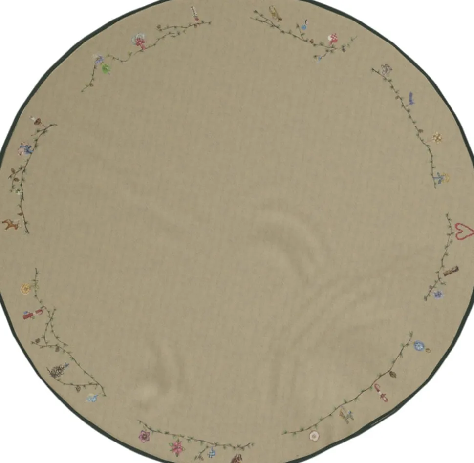 Træd ind i julens magiske og fredfyldte univers med Hammershøi Christmas. Her er der roligt, trygt og nærværende med nostalgiske og klassiske julemotiver malet i akvarel af kunstner Rikke Jacobsen og overført til Hammershøi-stellet designet af Hans-Christian Bauer. Også Hammershøi Christmas-juletræstæppet er fyldt med hyggelige, traditionelle motiver, der sørger for, at du på smukkeste vis kan skabe en perfekt base for årets juletræ og nyde den fantastiske Hammershøi Christmas-julestemning overalt i boligen. Det sandfarvede juletræstæppe har en diameter på 130 cm og er pyntet efter alle kunstens regler i en smuk kombination af printede motiver med broderede detaljer, hvor lærkegrenen langs kanten giver dig den samme finurlige, naturlige og hyggelige pynt, som du kender fra stellet, julekuglerne og kalenderlyset i serien. Materialet er en kraftig kanvaskvalitet, der holder jul efter jul og ligger pænt. Rundt i kanten pryder en mørkegrøn piping, der elegant afslutter juletræstæppet.