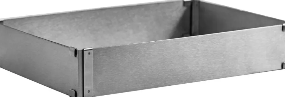 Justerbar rektangulær kageramme af rustfrit stål. Rammen er 5 cm høj og kan justeres i både længde og bredde, så du kan tilpasse den til præcis den størrelse, du har behov for til dit bagværk og dine støbte desserter. Kagerammen kan indstilles fra 18 x 25 cm op til 34 x 53 cm.