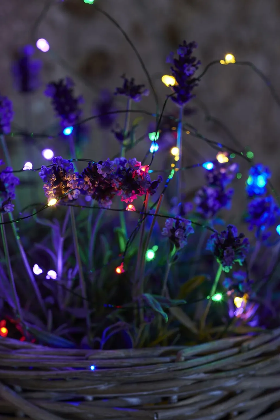 Sirius Batteri-Lyskæden Knirke har 40 meget små fine (0,5 cm) LED lys. Kæden er lavet med en fin tynd grøn ledning og pærerne er et mix af forskellige farver. Meget dekorativ kæde. Kæden har en udendørs batteriboks, og er velegnet til at skabe en fin stemning ude i haven. Kæden er 3,9 meter lang, og har et varmt naturligt lys. Dekorationen er batteridrevet og har en indbygget timer-funktion, der slukker lyset automatisk efter 6 timer, hvis du ikke selv slukker dem. Efter 18 timer tænder lyset igen, og sådan vil det fortsætte, hvis du ikke bruger sluk knappen. Batterier medfølger ikke. Der skal isættes 3 AA Batterier. Kan benyttes både indendørs og udendørs.
