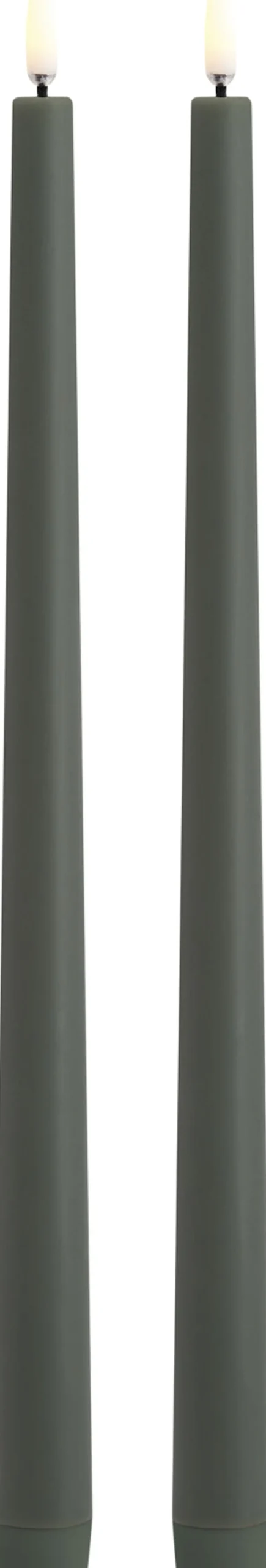 LED taper candle, Olive green, Smooth, 2,3×32 cm / 2-pack