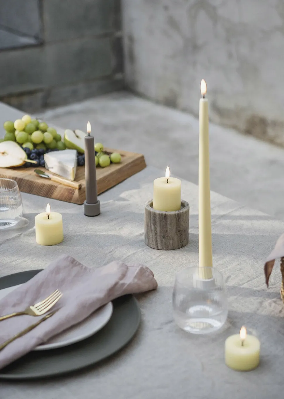 LED taper candle, Sandstone, Smooth, 2-pack, 2,3x15,5 cm
