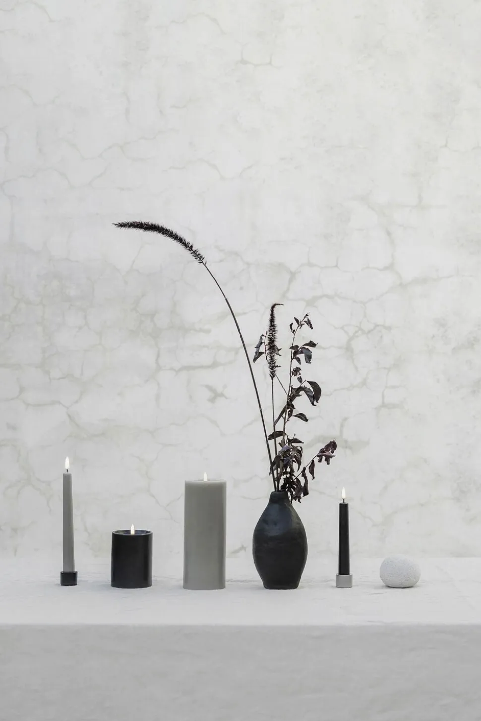LED taper candle, Sandstone, Smooth, 2-pack, 2,3×20,5 cm
