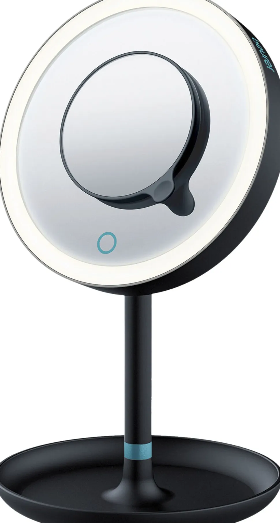 Makeup spejl BS 45 i flot sort Limited Edition udgave. Kosmetikspejlet har en ekstra stor spejlflade på 17,5 cm med LED lys rundt om. Lyset kan justeres med touch knappen.