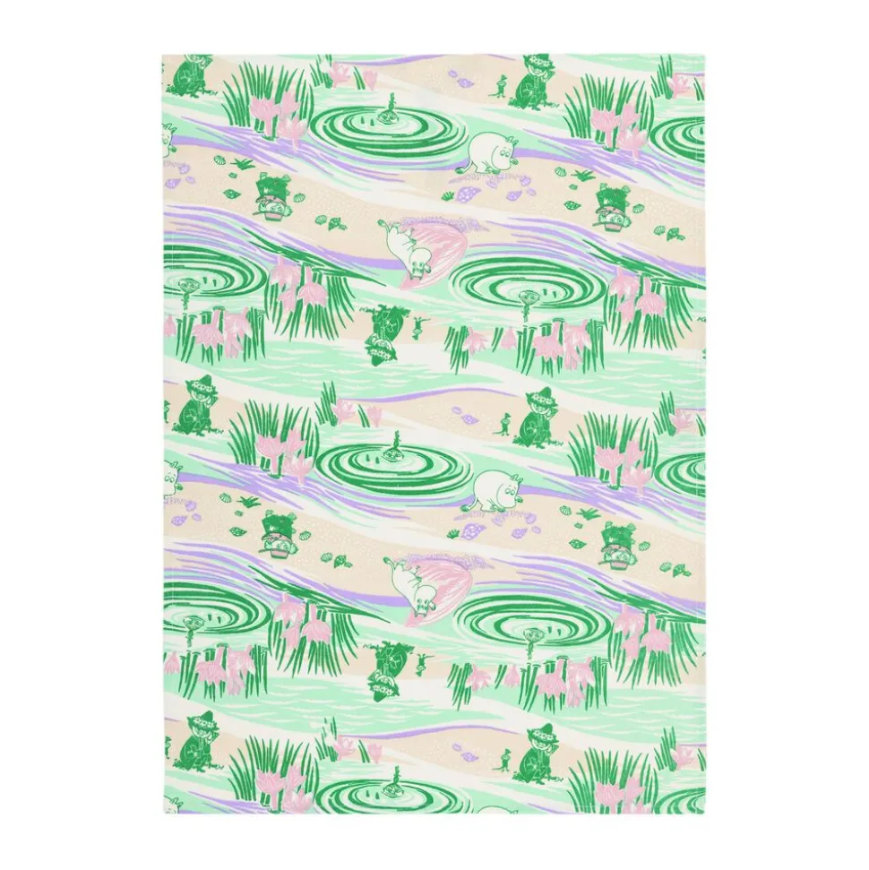 Skal du nyde solen som Snorkfrøken, eller leder du efter en ny musling til din samling Som Mumitrolden? Eller som Lille My, der er på vej til en dejlig dukkert efter en lang dag? Moomin Arabia-viskestykke 50×70 cm, Stranddag GOTS