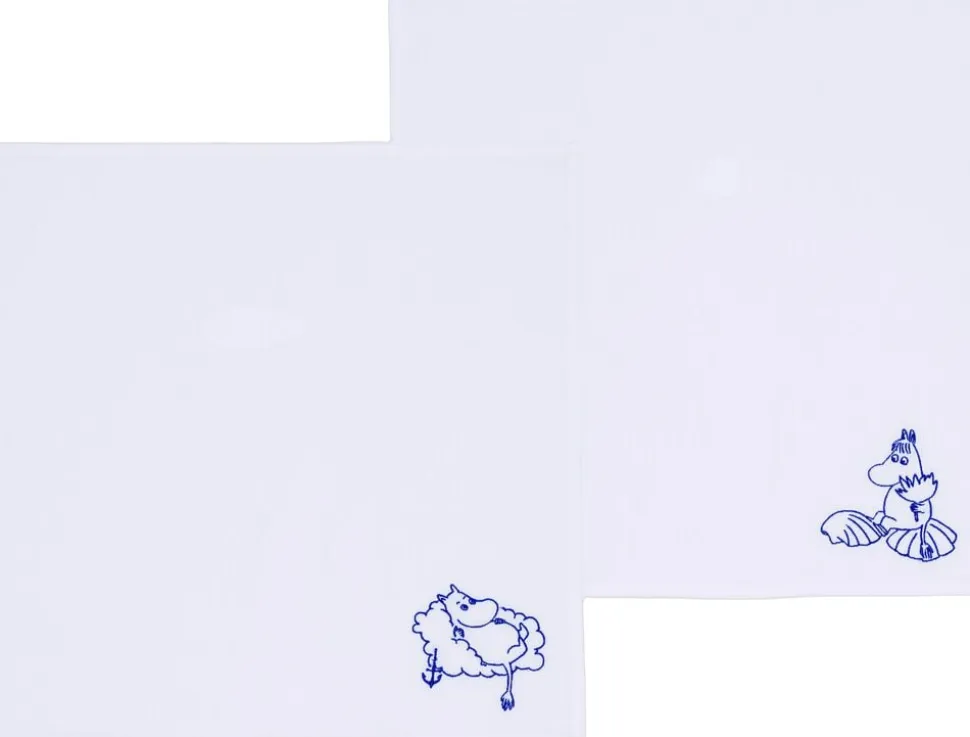 Føj noget mumimagi til borddækningen med smukke Mumi-servietter! Den harmoniske blå og hvide Haru-kollektion er en ode til Tove Janssons liv og arbejde. Illustrationerne er inspireret af kranse designet af kunstneren selv, der hylder øens flora. Moomin Arabia-servietsæt, Haru, GOTS