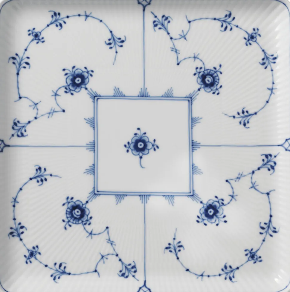 Musselmalet Riflet var Royal Copenhagens første stel.I dag, 240 år senere, er det stadig et af verdens mest kendte og eftertragtede porcelænsstel.Musselmalet Riflet produceres stadig somi begyndelsen, hvor hver enkel steldel er et stykke kunsthåndværk, malet i hånden.Designet i 1775.Revideret i 1880’erne af Arnold Krog.