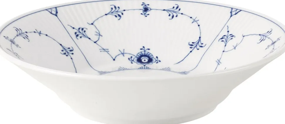 Som en tilføjelse til det eksisterende udvalg af dybe tallerkener i Musselmalet Riflet passer den dybe tallerken på 21 cm ind mellem den mindre og større version. Tallerkenen er oplagt at bruge til mindre, smagfulde serveringer eller snacks.