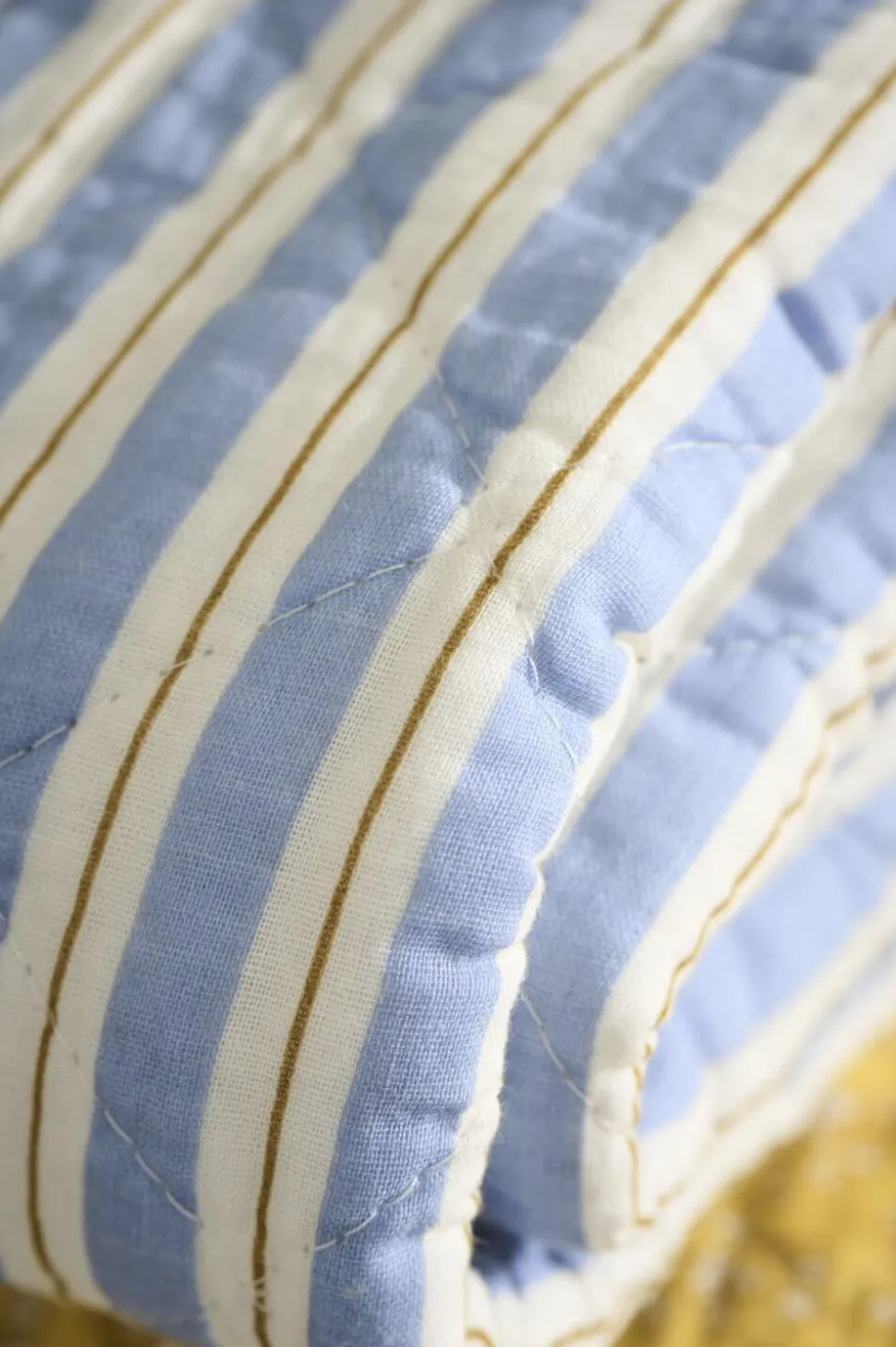 Quilt blå m/hvide og brune striber