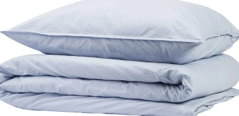 Stonewashed sengesæt fra Magasin du Nord Collection har et moderne design med kraftige dobbeltstikninger i kanterne og et vasket, let rustikt udtryk. Der følger to hovedpudebetræk med.