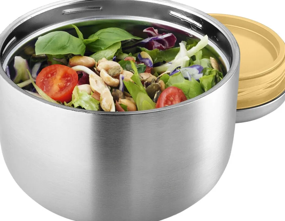 Brug en smart og praktisk to go box og begræns brugen af alufolie og engangsplast. Snup f.eks. gårsdagens rester med dig og glæd dig over, at du både har nem mad til frokost og reducerer madspild. Eller brug boxen til salater, sandwich og snacks. En indbygget ventil letter trykket i beholderen, så den nemt kan åbnes.